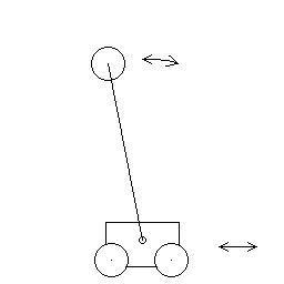 棒が右に倒れそうになったら台車を右へ、左に倒れそうになったら左へ動かして、 棒が倒れないようにコンピュータで制御します。